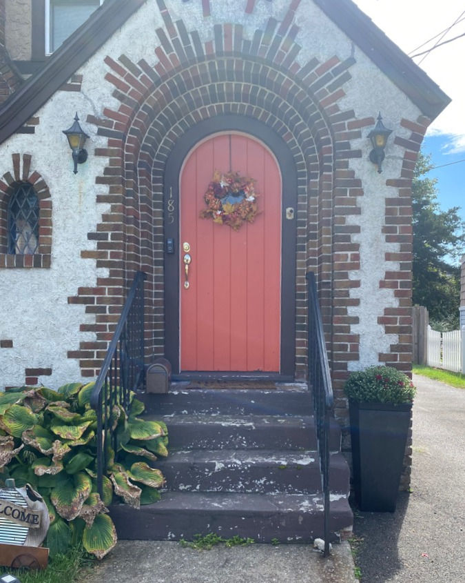 I've been wanting to dress up our front steps a little more, but we're limited on space. There's an odd notch right next to the steps that is just concrete, so I decided to add a planter.