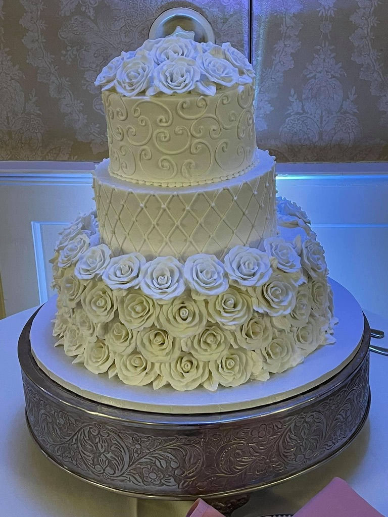 Our package include the ceremony, cocktail hour - which included a full open bar, our choice of seven passed hor d'oeuvres, and a Bountiful Harvest Table with charcuterie options, a full seated dinner - which included a continuation of the open bar, an appetizer, a salad, and four dinner options (beef, chicken, fish, and vegetarian), and a cake supplied by Chimmirri's Bakery - we opted for the Canoli Cake. Dinner also included a choice of white or red wine, and a champagne toast.
